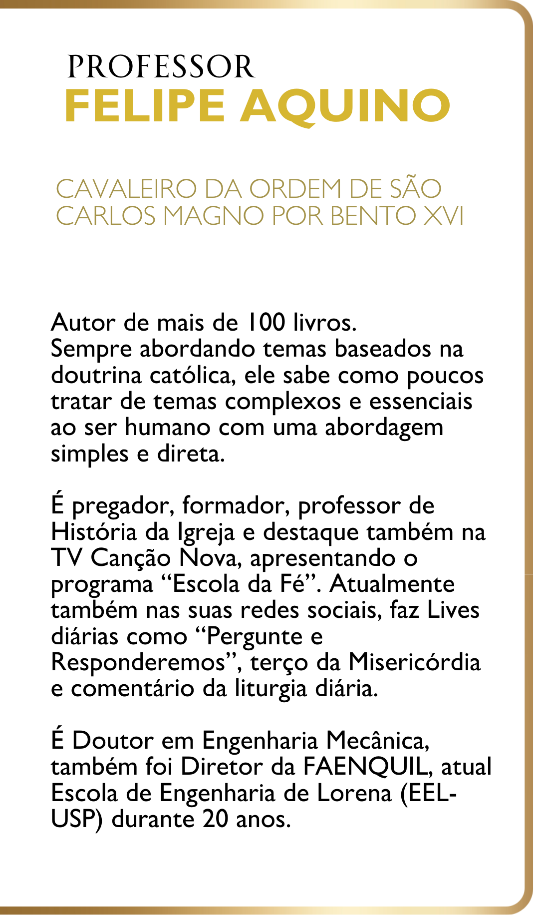 Garanta o desconto na sua inscrição e se torne um aluno do Prof. Felipe Aquino no curso sobre História da Igreja.